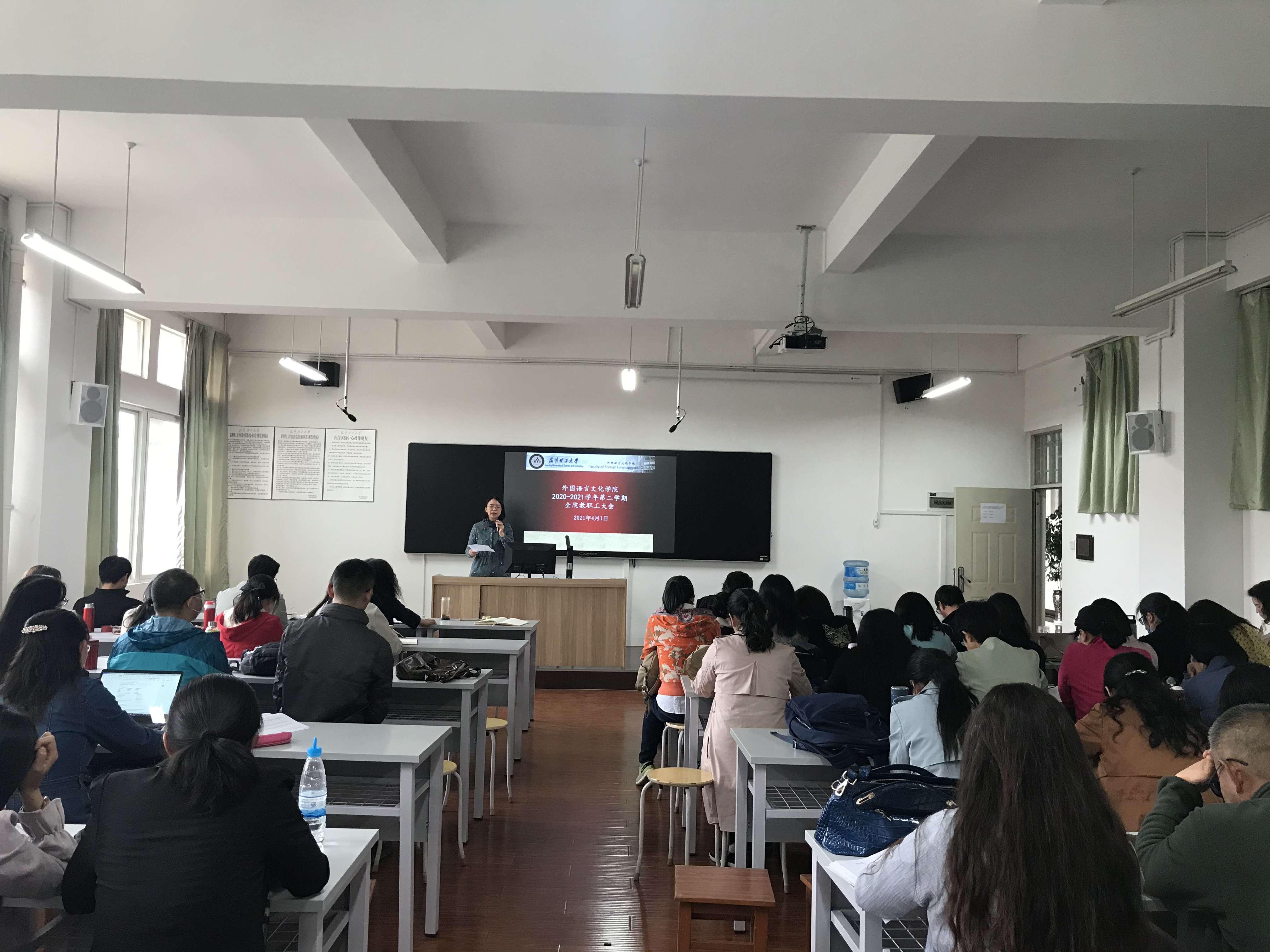 必须提升外语教学质量。万书记也传达了各项重要会议精神,鼓励师生增强党史学习,强化纪律和规矩意识,并在“三全育人”和课程思政方面加强工作,同时也在疫情常态化防控,树立安全意识,关注师生身心健康等方面做出讲话。万书记向老师们传达了学校财务现况和福利方面的好消息,鼓励大家积极工作,越自律越自由。