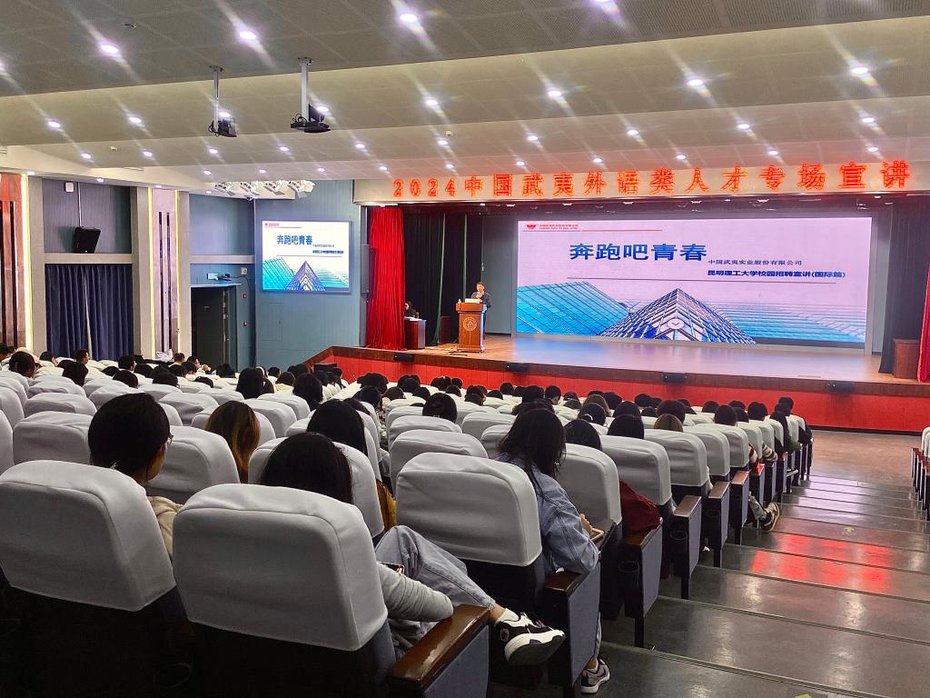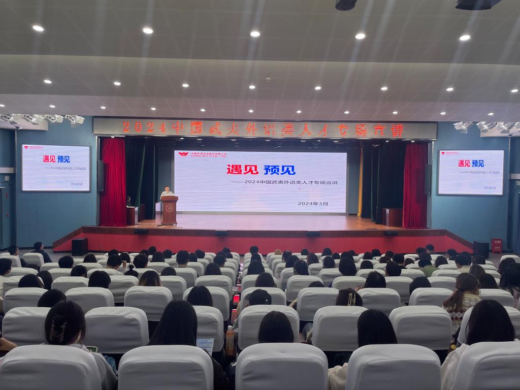 邀请中国武夷实业股份有限公司(以下简称“中国武夷”)在公教楼小剧场开展海外就业经验分享会暨专场宣讲会。院党委副书记邱清遐,本科生及研究生就业指导教师,外语类本科生、研究生,以及来自其他大象视频
