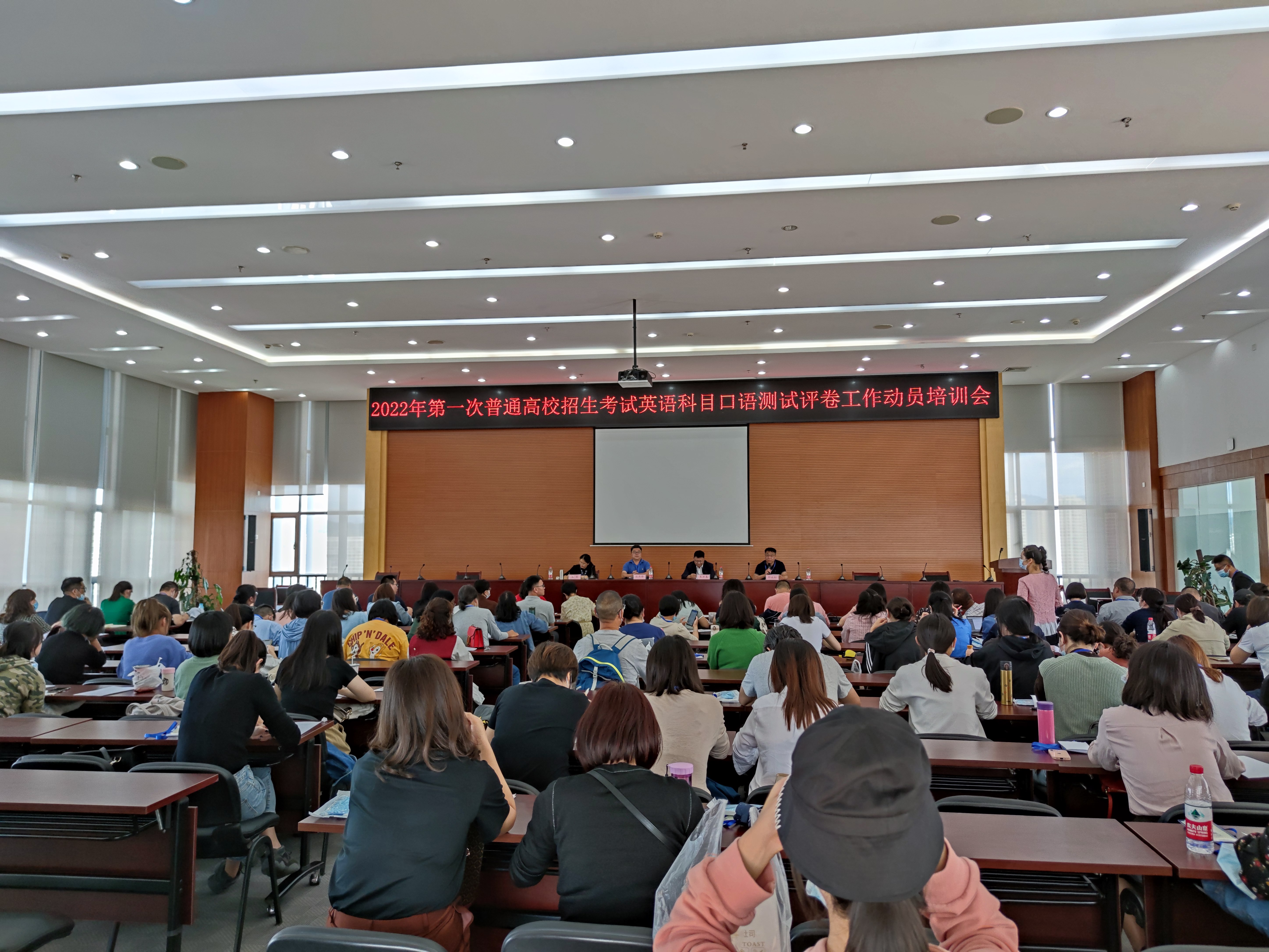 动员大会上,省招考院学业水平考试办张燕锋主任张主任提出六点要求:1、高度重视。高考英语听力和口语测试属于高考成绩的重要组成部分,社会影响大,关系每一位考生的切身利益。2、加强业务培训。参加评卷的教师要经过统一业务培训,培训合格才能上岗参加评卷工作。3、统一评分标准,确保评卷质量。评卷工作组正式评卷前要认真组织好抽样和试评工作。4、严肃工作纪律,保守工作秘密。评卷工作场所实行封闭管理,所有工作人员必须持证上岗,凭证出入。5、确保数据安全。所有评卷工作保证在局域网中进行,必须和外网隔绝。6、严格做好疫情防控。评卷场所要做好卫生消毒,准备好洗手消毒液,防护口罩,体温检测器。