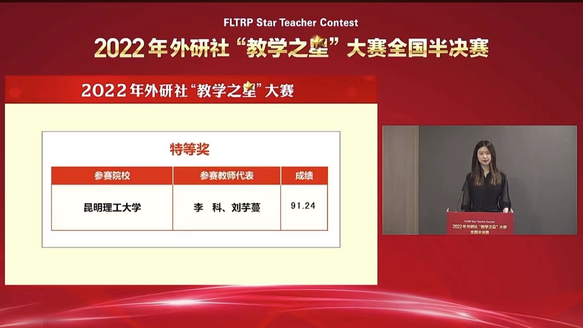 李科、刘芋蔓、龙娟、高云倩、姜婷仪团队荣获特等奖,成功晋级将于2022年下半年举行的全国总决赛,这也是自2019年以来我校大学英语教学团队连续四年参加“教学之星”大赛取得的最佳成绩。