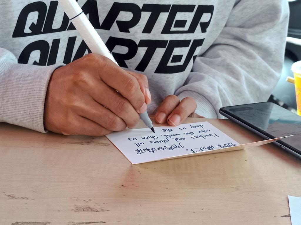 、各个专业的学生踊跃参与并发挥创意,用中文分别搭配英语、法语、德语、韩语、日语写下对老师们的感谢与祝福,由学生社团管理部将贺卡递送到每一位外语教师手中。