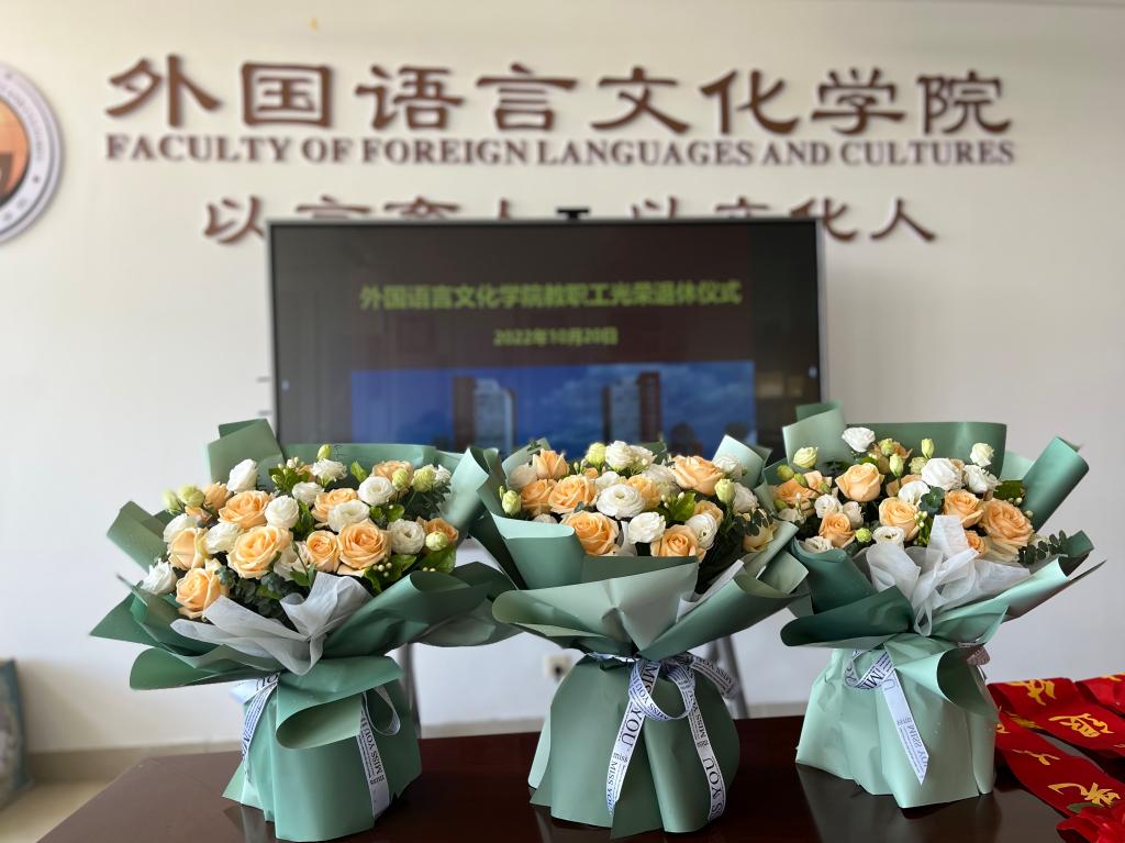 工会为退休职工送上鲜花和纪念品并合影留念,对3位退休教师将最美好的时光奉献给昆工与大象视频