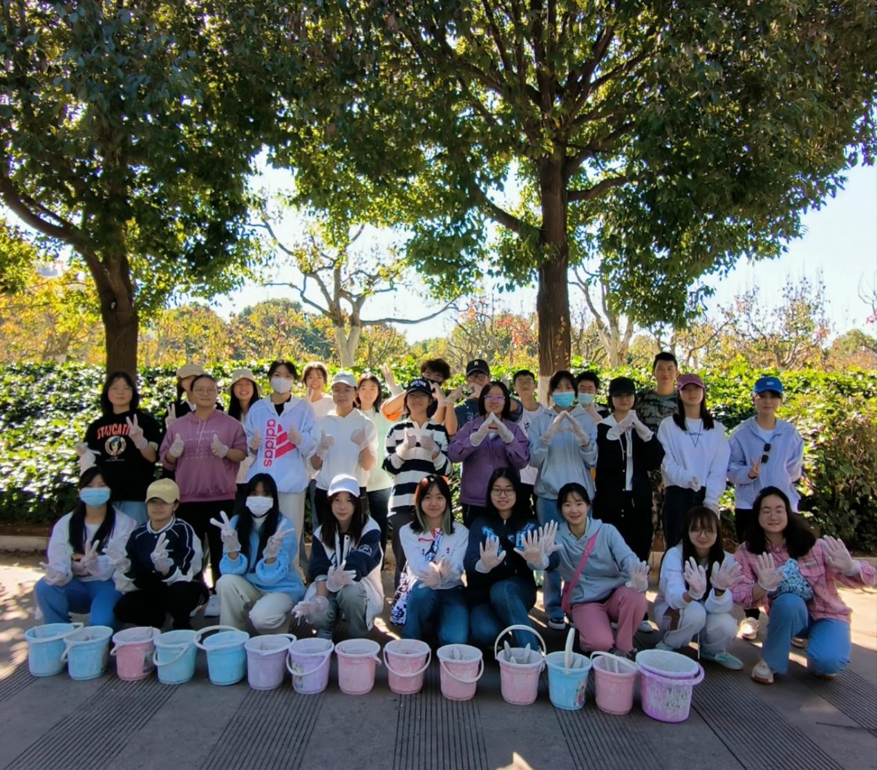 辅导员段隆军以及2022级221班学生共计31人参加了此次集体劳动,负责怡园C区50棵树木的涂刷任务。