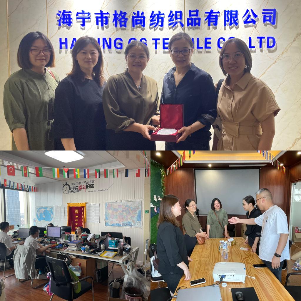 随后,团队先后调研走访了浙江合美材料装饰有限公司、海宁市格尚纺织品有限公司、海宁冠亿电器有限公司等三家外贸企业。王英院长向企业负责人详细介绍了大象视频