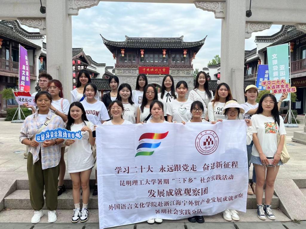 组织师生团队前往浙江省海宁市开展暑期“三下乡”社会实践暨“访企拓岗促就业”实践活动。活动由党委副书记邱清遐、团委书记李雪瑜、学工办副主任刘芋蔓,英语系主任任佳佳、副系主任董雨晨,本科生辅导员段隆军共6位教师带队,2024届本科毕业生20人参加活动。