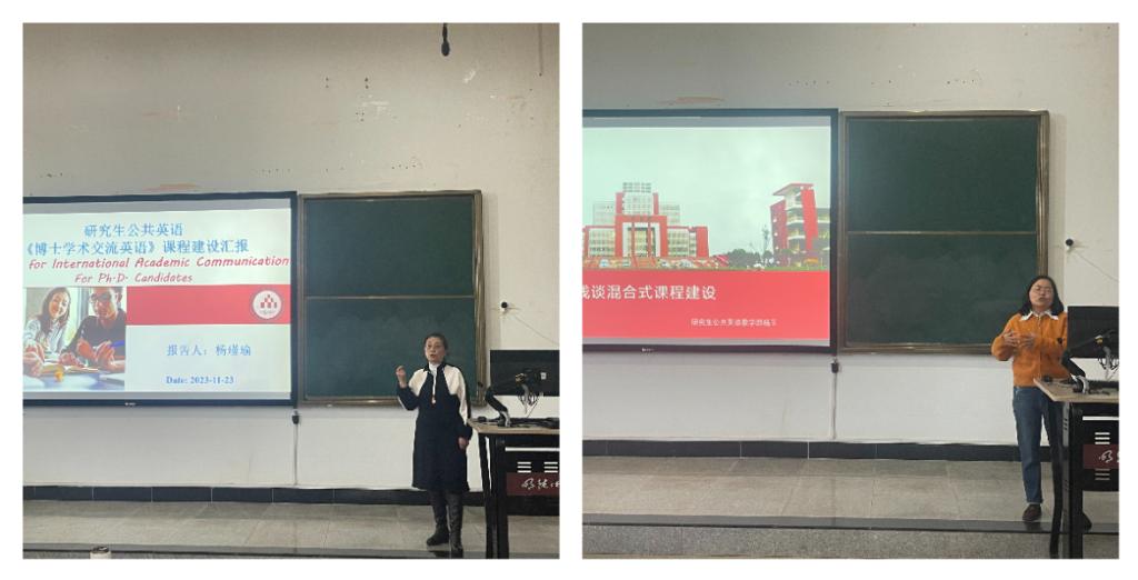 会议第一阶段开展研究生公共英语课程建设成果交流汇报。《博士学术交流英语》课程团队负责人杨瑾瑜副教授详细阐述了课程的建设背景、课程详情、建设思路和建设成果等。此课程为全校博士研究生撰写英语学术论文提供良好支撑,帮助多位学生修改英语学术论文并投稿成功,学生学术英语水平进一步提高,教师团队出版学术著作一部,课程建设取得丰硕成果。该课程于2019年入选第一批“云南省研究生优质课程”项目,2020年课程团队申报的硕士《学术交流英语》获批入选省级优质课程建设项目,完成学术交流英语从硕士到博士课程一体化、系统化建设。