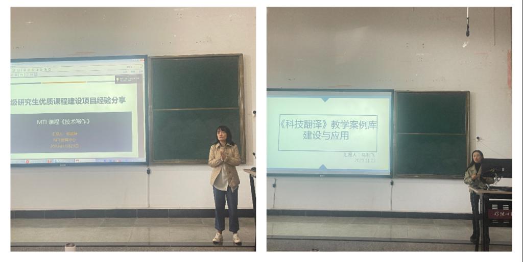 2个MTI研究生课程教师团队交流汇报了相关课程建设情况和阶段性成果。MTI专业课程《技术写作》团队负责人郑景婷教授着重介绍了课程建设目标、课程内容和创新点,重点介绍在教学方法、考核方式、实践性教学环节设计等方面的改革。该课程为云南省首家、唯一开设的课程,于2020年入选“云南省研究生优质课程”项目。课程通过融合行业实践、名师讲座等形成产业融入课堂的模式,构建课程教学的闭环,充分利用现代信息技术,注重探究式、讨论式、互动式教学以及项目进课堂等方式展开教学。