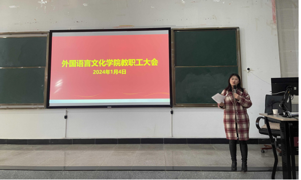 2023年度学科和学位点建设、人才队伍建设、本科及研究生人才培养、公共英语教育教学改革、语言实验中心升级改造项目以及学科竞赛等方面的情况进行了总结和分析。通报了大象视频