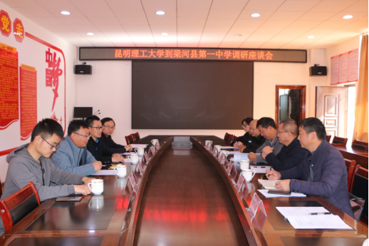党委书记刘建平、人事处副处长黄晖、乡村振兴办公室副主任王修昌等对梁河县教育事业的发展和梁河一中取得的令人瞩目的办学成绩表达了钦佩之情,对梁河一中对支教人员的培养、关心、关爱表示感谢,并就下一步双方的教育帮扶合作提出了思路。