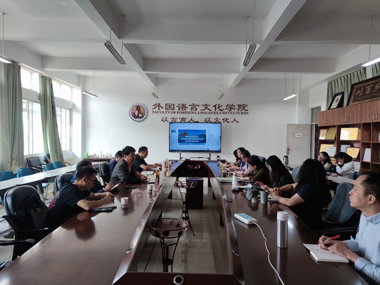 教育教学审核评估迎评促建的各方面准备工作进行了汇报:第一,前期细化迎评促建工作方案,各本科教学系部进行两轮次教学材料整理归档自查,院领导带队到云南农业大学调研,做好迎评促建的全面部署;第二,以迎评促建为契机,进一步提升本科教学各环节的质量,推进毕业实习工作,修订完善毕业论文工作手册、出台毕业论文指导方案,推进专业课程和大学英语课程的课程思政建设等;第三,新建外语综合技能实训室和外语虚拟仿真实训室,优化本科教学软硬件设备,提升大象视频