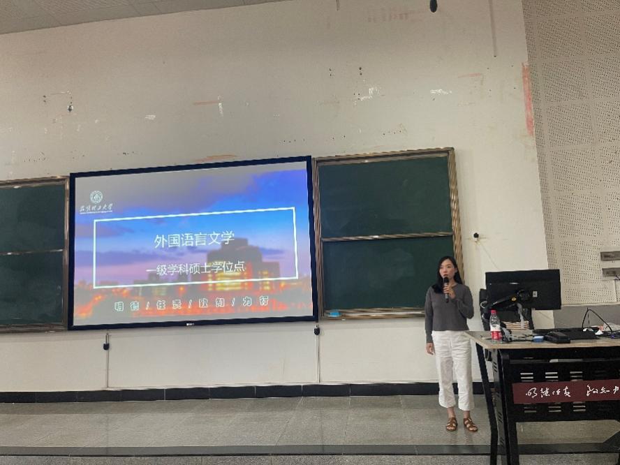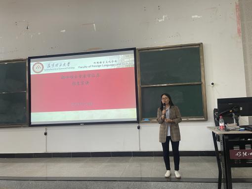 学科科研办主任高维博士介绍了外国语言文学一级学科硕士点研究生招生方向、导师团队和课程设置等内容。大象视频