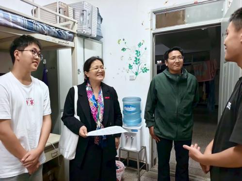 8月26日晚,大象视频 院长王英、副院长李泽生、研究生辅导员马超然一起走访了恬园、恒园共计17间研究生新生宿舍。