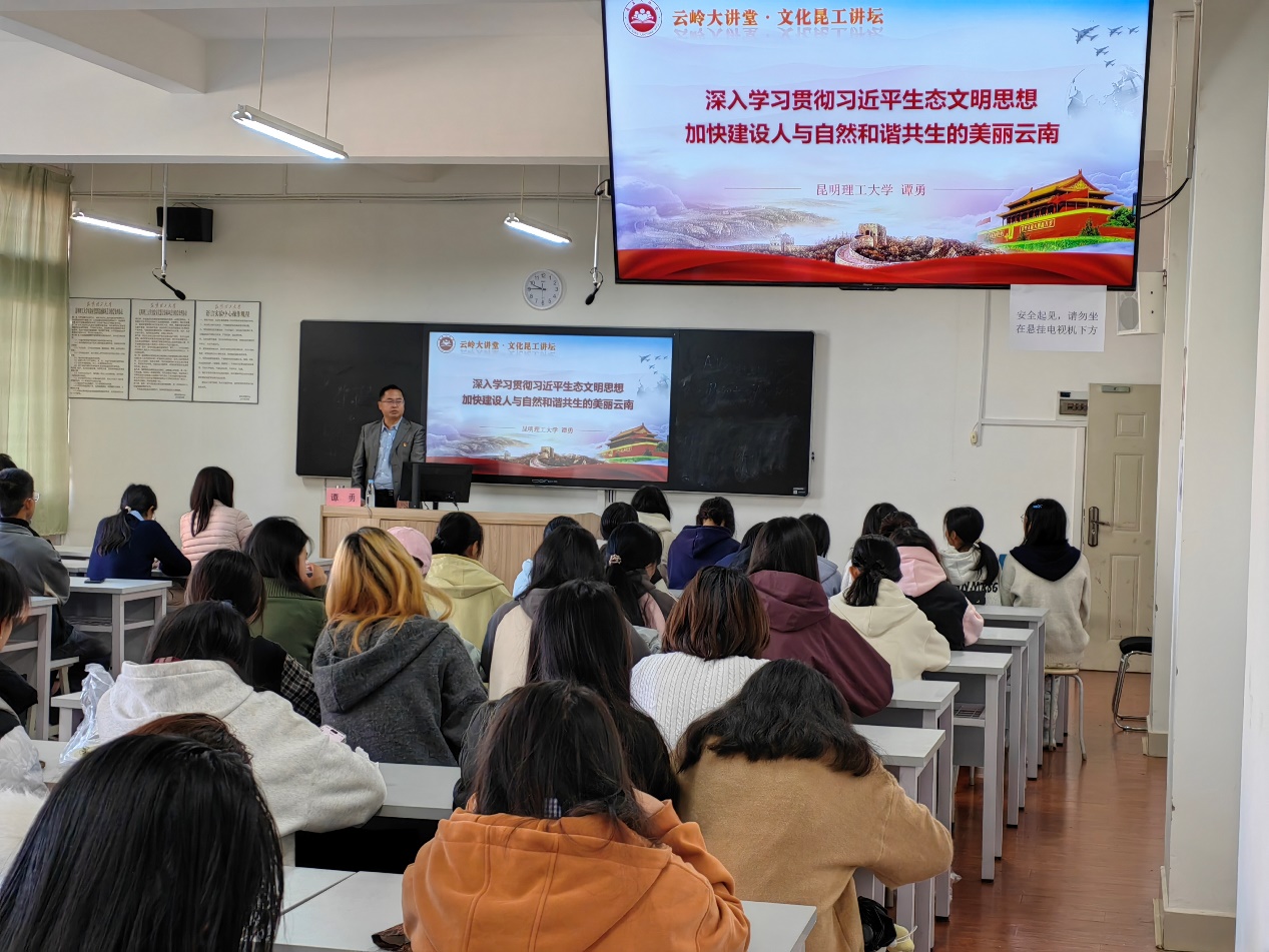 在呈贡校区博文楼403教室承办云岭大讲堂·文化昆工讲坛第一百一十六讲,邀请校党委宣传部副部长谭勇副教授作题为“深入学习贯彻习近平生态文明思想加快建设人与自然和谐共生的美丽云南”专题讲座。大象视频