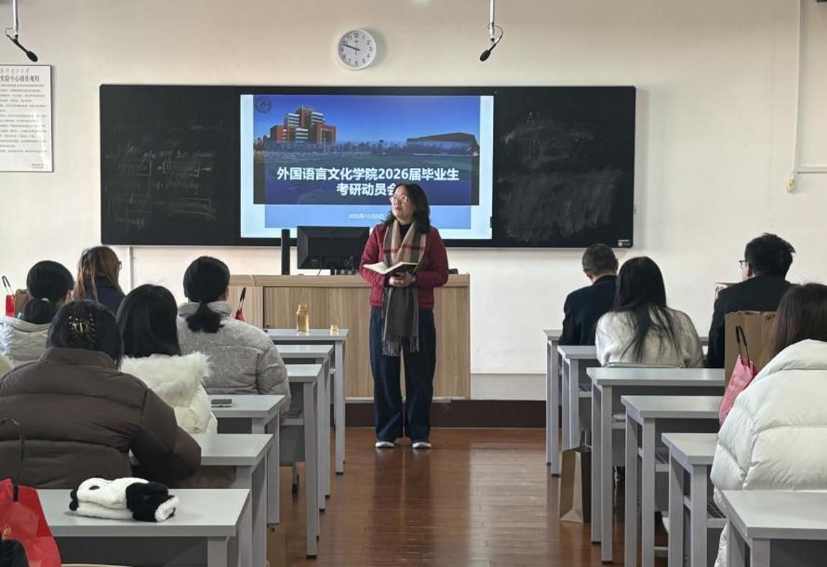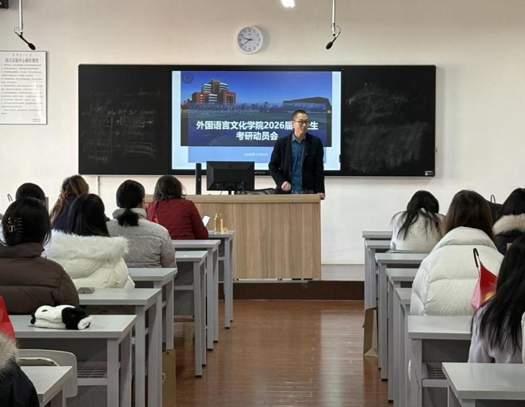 党委书记刘建平、院长王英、党委副书记孙冠华、辅导员刘芋蔓,以及2026届全体考研学子参加活动,活动由孙冠华主持。