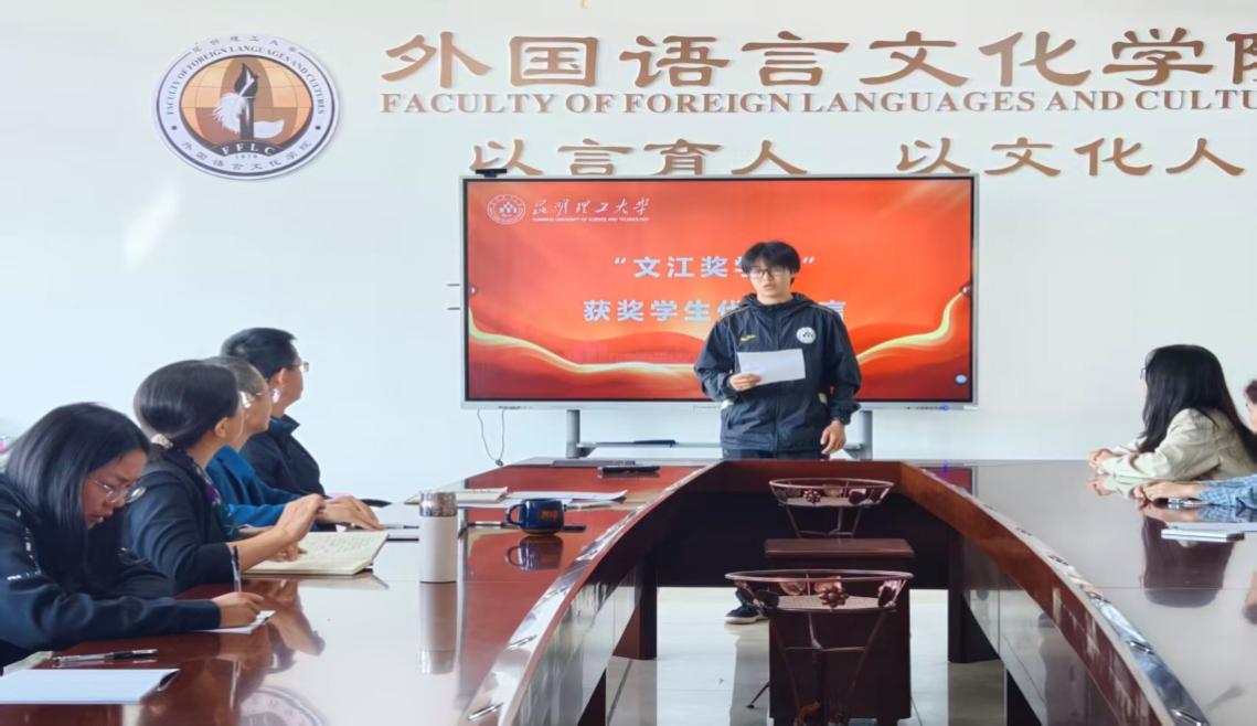 严格评审,英语专业本科生谢丽娜、蒋芮荣获文江一等奖学金,李智丹、杨绘苹、杨诗怡、傅思源获文江二等奖学金;英语专业本科生蒙钰、高希锦、张么吉获得新元助学金。与会领导为获奖学生颁发证书。