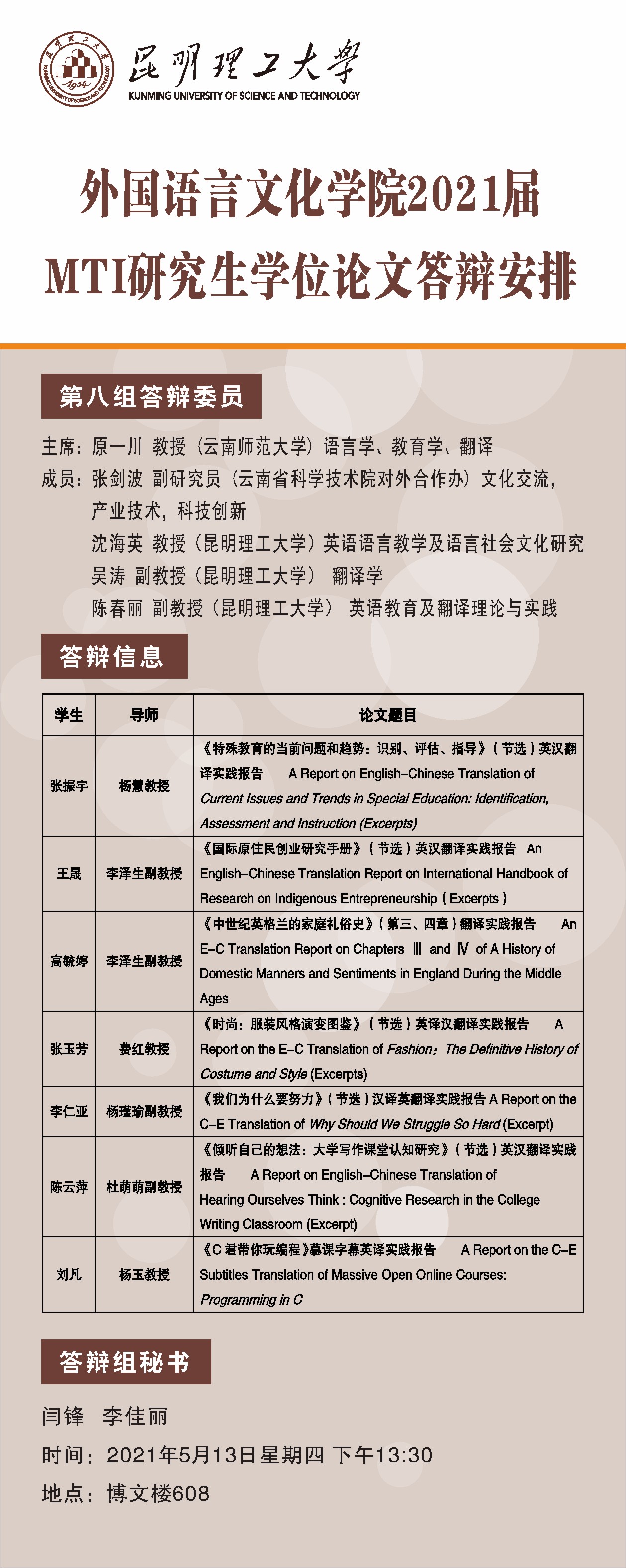 大象视频 2021届MTI研究生学位论文答辩公示(第八组)