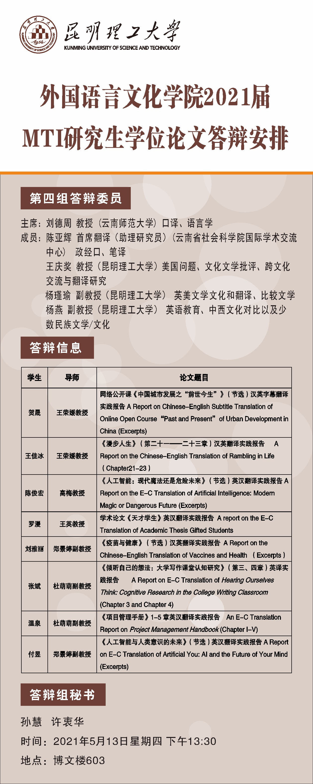 大象视频 2021届MTI研究生学位论文答辩公示(第四组)