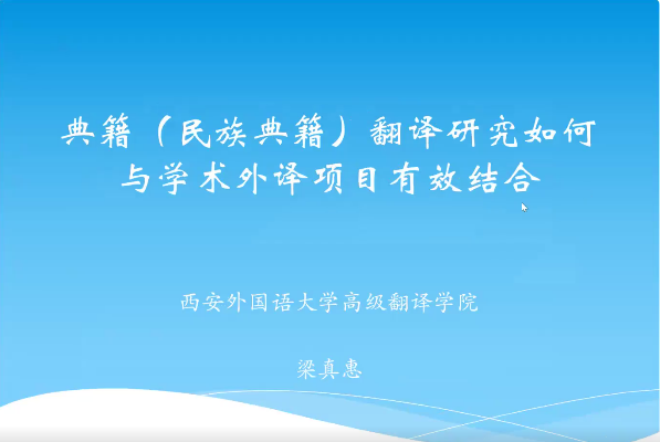 教师申报的9个选题的亮点和不足之处,并逐一对选题提出具体的指导意见和建议。随后,梁真惠作了题为《民族典籍翻译研究如何与中华学术外译项目有效结合》的专题报告。梁真惠教授结合自己十几年来坚持进行的柯尔克孜民族的英雄史诗玛纳斯的翻译与传播研究的学术成长经历和中华学术外译项目的申报经验,详细介绍了该类项目的选题方向、申报书撰写、项目评审的重要标准和要求以及项目申报的注意事项。她鼓励大象视频
