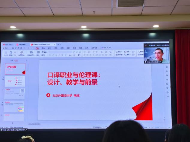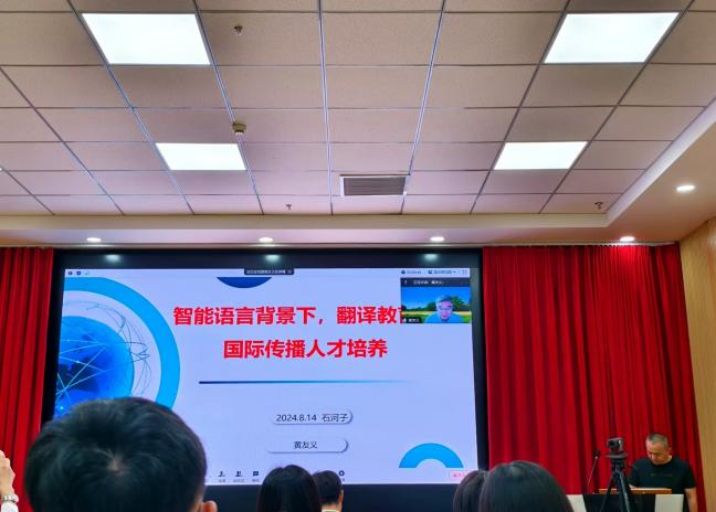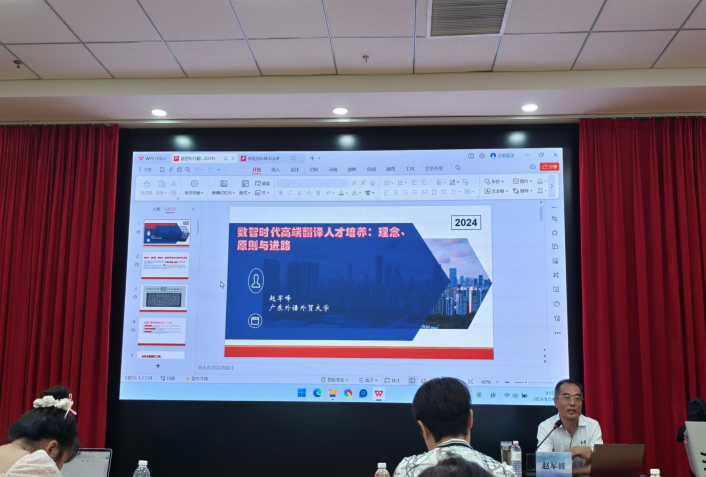 培训会围绕“数智时代翻译人才培养”的主题展开深入探讨。黄友义以“智能语言背景下,翻译教育与国际传播人才培养”为题,探讨了翻译教育与国际传播人才培养的融合路径,强调翻译应服务国家需求,注重实践能力的培养;赵军峰分析了数智时代翻译人才培养的理念、原则与路径,强调了新时代背景下翻译教育面临的机遇与挑战;姚斌聚焦口译职业与伦理,强调了人工智能时代下的口译职业伦理培养;徐然分享了翻译研究方法和论文写作课的教学设计,为参训教师提供了实用的教学指导;穆雷指出翻译专业教育正经历从教学到教育的深刻转变,认为翻译专业研究生培养模式及MTI导师责任的落实是当前应该聚焦的重点。