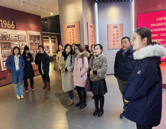 党员们参观了校史馆,深入细致了解我校70年发展历程中取得的丰硕成果,感受一代代昆工人为国家建设和学校发展的所付出的艰辛努力。随后,全体党员在图书馆党建书屋进行交流讨论,曾佑琴、王嫦丽、孟雪凡作重点发言,共同感悟“根植红土、情系有色、坚韧不拔、赤诚报国”的昆工精神,表示要传承学校优良传统,守正创新,为实现教育强国梦贡献力量。