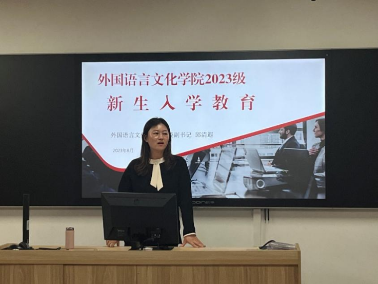 副院长马倩以“认清自我、认清专业、认清目标”为题,结合专业实际简单介绍了专业课程安排,同时也结合个人学习经历与新生分享经验,勉励新生适应大学生活、明确学习规划,提出更高的期许。