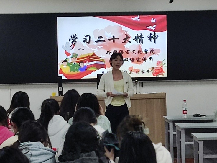 “清风”双语宣讲团成员深入各自班级,用青年学生能听懂、能领会、愿意听的语言开展党的二十大精神中英文双语宣讲活动。
