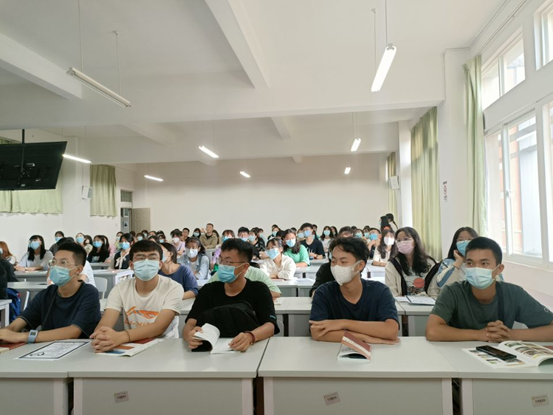 。党委副书记邱清遐向新生讲解如何培养安全意识以及防诈骗和反宗教渗透的知识 。团委书记李雪瑜老师带领同学们学习学生手册,并向同学们介绍外文院的团学组织和团员相关知识。教务办李月亭老师讲解选课注意事项。班主任黄老师和辅导员王海燕老师介绍学业相关知识。最后,分别由学生组织的负责人进行招新讲解。