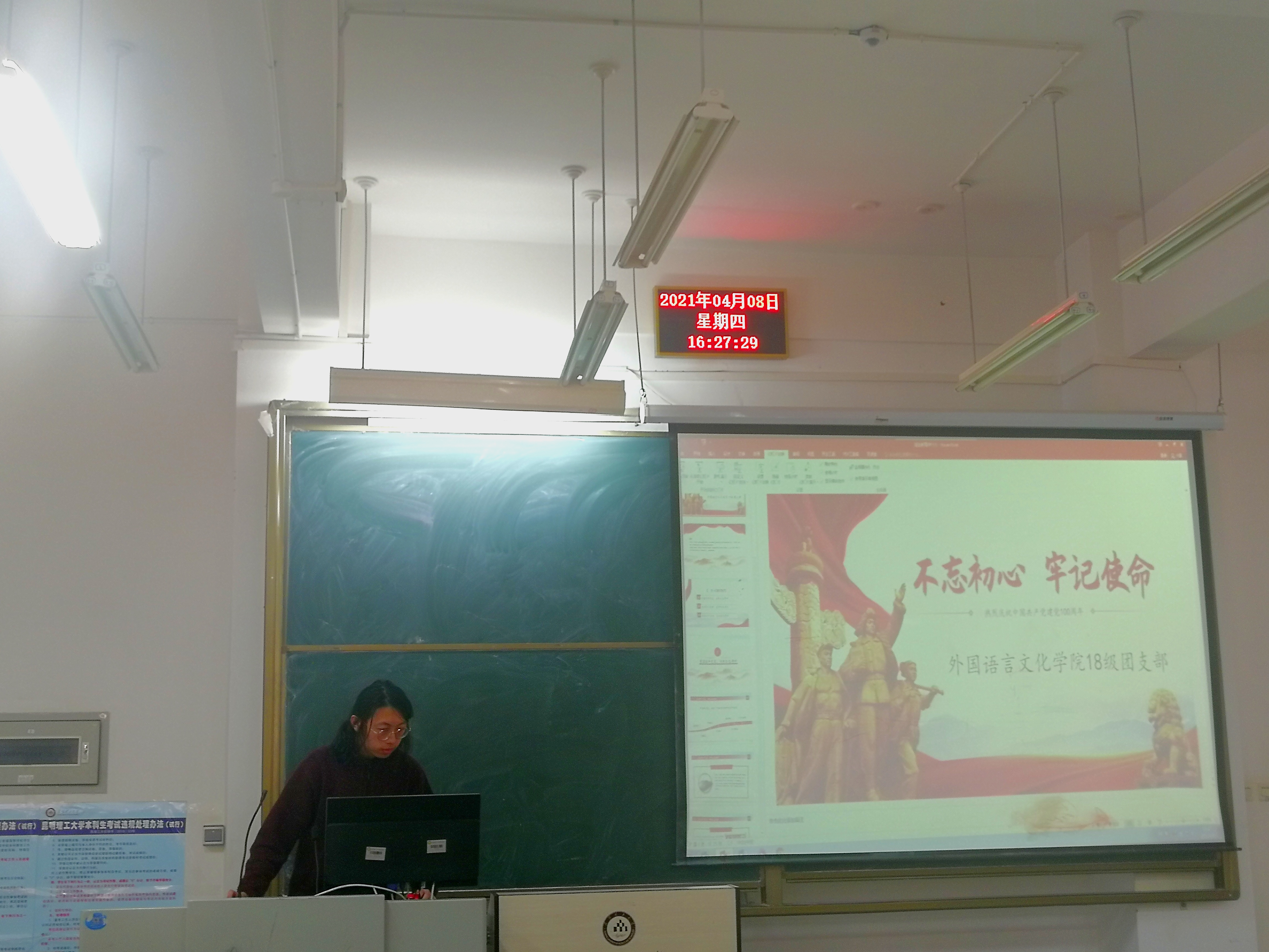 2018级于西北A教学楼102教室开展“学党史,强信念,跟党走”主题团日活动,本次活动由2018级心理委员龙俊诘主持,2018级全体同学参加。