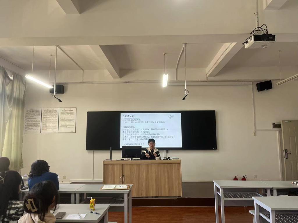 主题班会充分发挥学生同辈榜样力量,引导学生培养“自我教育、自我管理、自我服务、自我监督”的良好学习意识。辅导员、班主任邀请大三、大四专业成绩排名靠前的优秀学生代表参加低年级班会,从日常学习计划、课程学习、过级考试等多方面向学弟学妹分享学习方法,从自身成长经验出发,鼓励同辈积极参加比赛、以赛促学。