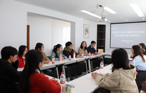 2024届毕业生翻译类集中实习启动仪式在昆明译诺翻译服务有限公司举行。副院长马倩、实习带队教师、昆明译诺翻译服务有限公司总经理字敏及相关负责人、我院2024届7名毕业生参加了启动仪式。