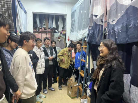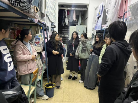 院长王英一行到学生宿舍走访看望2022级、2023级本科学生。王英与每位同学就期末日程安排、复习备考状况、离校行程和假期规划等学习、生活方面的问题进行了交谈。