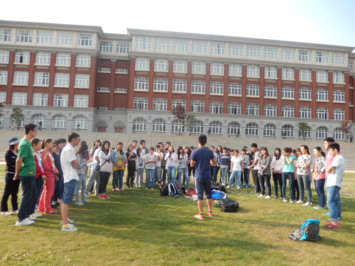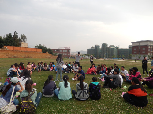 于呈贡校区公教楼前草坪上举行了本学期第二次团日活动的最后一项内容。本次团日活动的主题为“生命虽易,精彩不易,且行且珍惜”,旨在通过此次团日活动呼吁同学们平时积极锻炼身体,增强体质。外文院2013级全体学生都积极参加了此次团日活动。