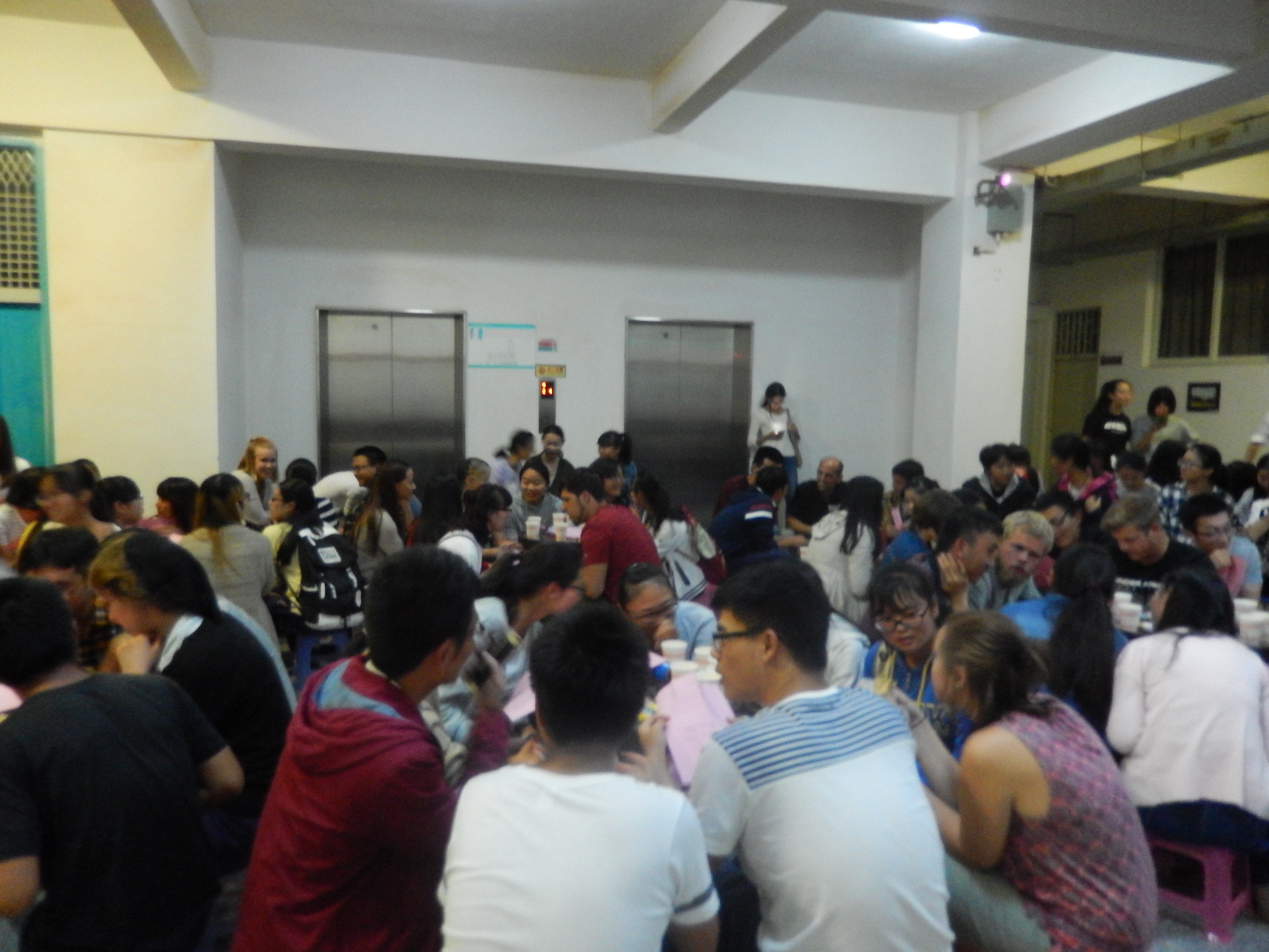 晚上7点整,活动正式开始。在主持人吴瑞丰简短的开场白之后,外国友人Byron首先为我们带来了精彩的腹语表演,同学们的笑声一阵接一阵,现场气氛迅速活跃起来。第二环节开展了“你画我猜”的游戏。一共八名志愿者,每两人分成一个小组,进行了两次PK,第一轮获胜的是崔海凤和李晴雯小组,第二轮获胜的是黄玺与外国友人Gerey小组。第三环节开展话题交流活动。现场为大家准备了一些话题,同学们根据这些话题与外国友人进行交流。同学们都非常积极,场面非常热闹,将现场气氛推到高潮。整场活动持续了一个半小时,整个过程中,大家都沉浸在欢快和谐的气氛里。最后,主持人对本次活动做了总结,本次英语角活动圆满结束。