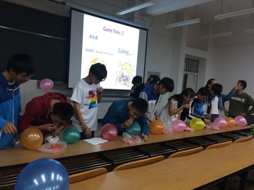 新社员的才艺表演阶段,歌曲《谢谢侬》以及吉他独奏《青春》,歌声穿透着每个人的心灵,大家纷纷拍手叫好。音乐的陶冶过后就是文学的熏陶,一组同学的朗诵表演让我们体会到了中外文化的差异,感受到了不同文化的魅力。最后,名为“那当然了”的互相伤害游戏,美食比赛,一袋西瓜的绝望,一次说吃就吃的游戏,使同学们越打感情越浓厚,增进彼此友谊。本次活动在这欢声笑语中落下帷幕。